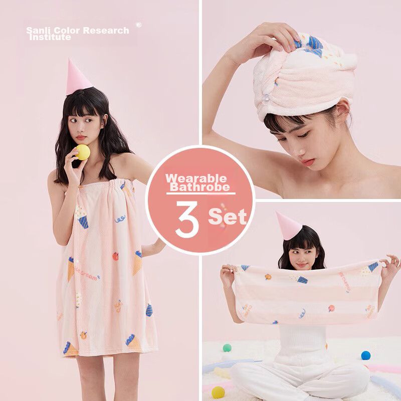 HogarBañoToallasSet de bata, gorro y toalla diseño helados Rosa