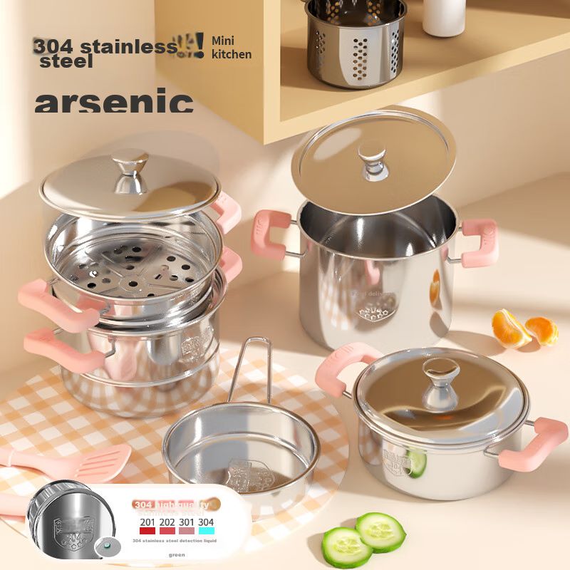 Set de Cocina Mini TRUE COOKING 8 piezas de acero inoxidable para niños y niñas