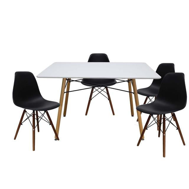 Set de Comedor Mesa Oslo Blanca con 4 Sillas Oslo Nogal Negro