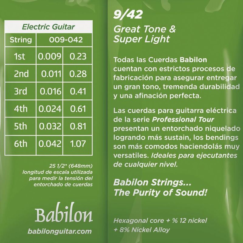 ElectrónicaInstrumentos MusicalesInstrumentos de CuerdasSet de Cuerdas para Guitarra Eléctrica (0.009-0.042) BEG30/009 BABILON.
