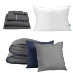 Set de Edredón Individual Doble Vista Couzy Azul Marino-Gris + Sábanas Royal Gris + Almohada Royal RGH