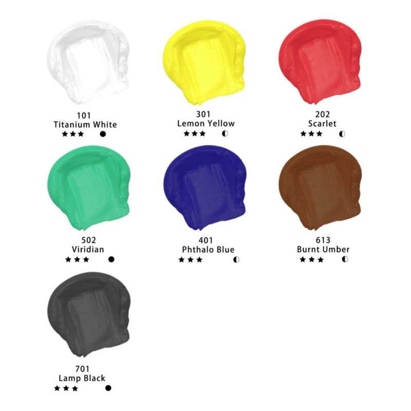 Set de pintura acrílica Artecho 7 colores primarios tubos de 60 ml y 120 ml