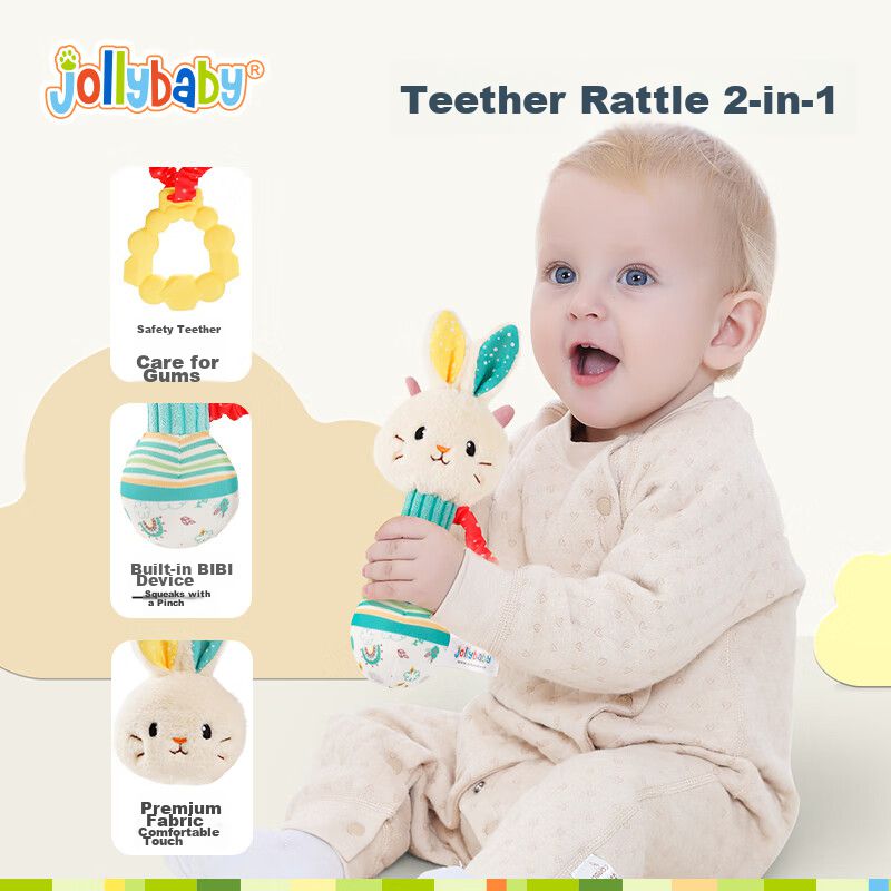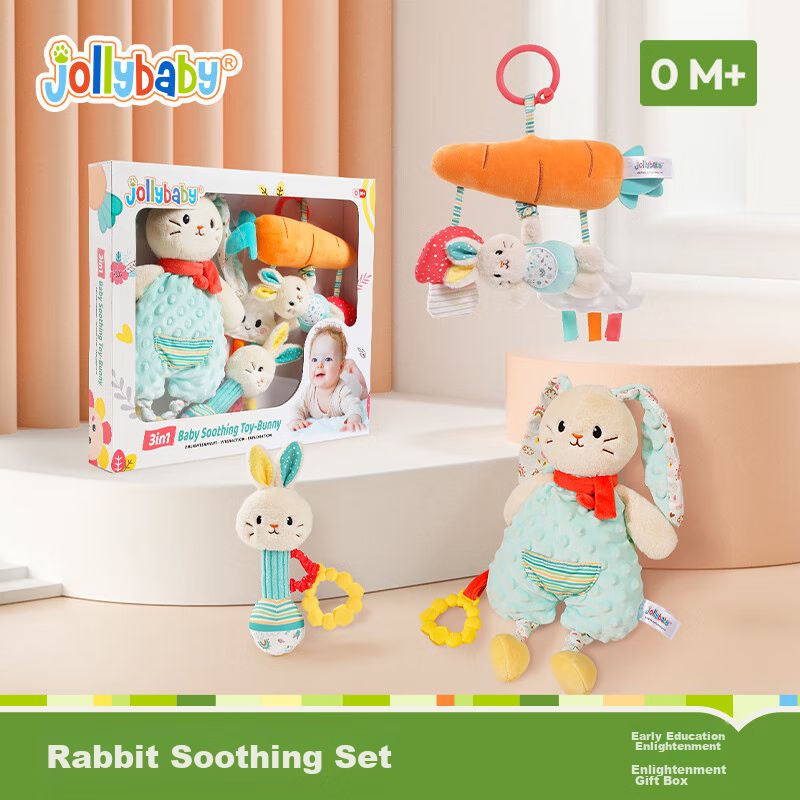 Set de regalo JOLLYBABY Conejo de peluche y sonajeros de poliéster para bebés