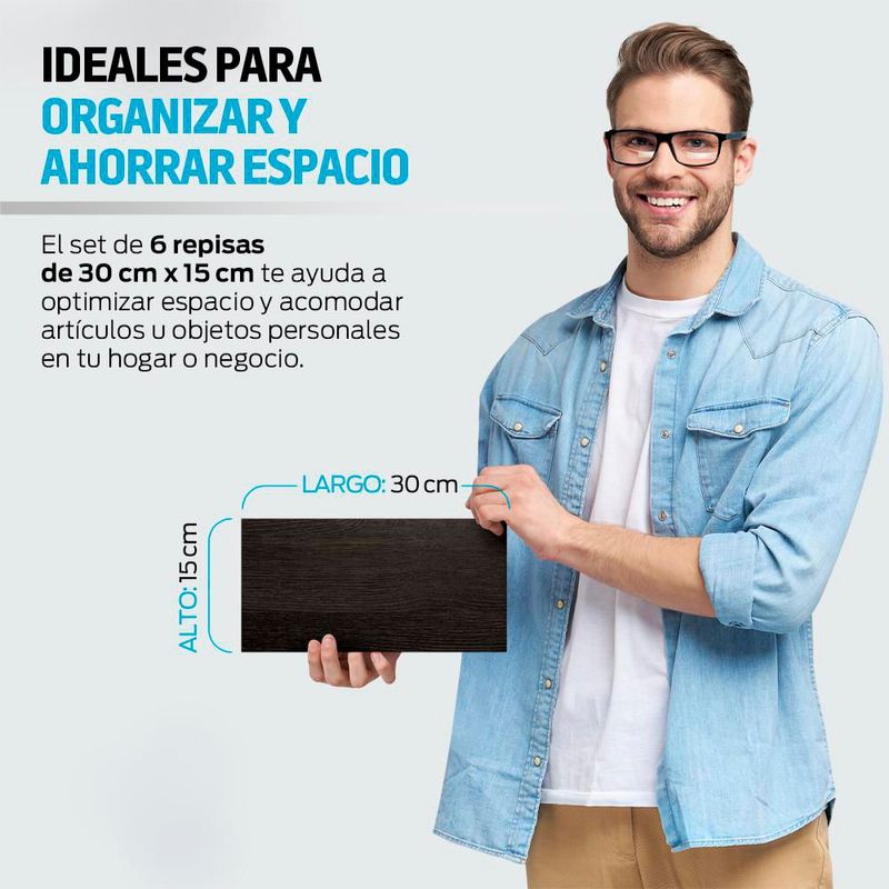 Set de Repisas Flotantes de Madera 6 Piezas tipo Librero 30x15 cm