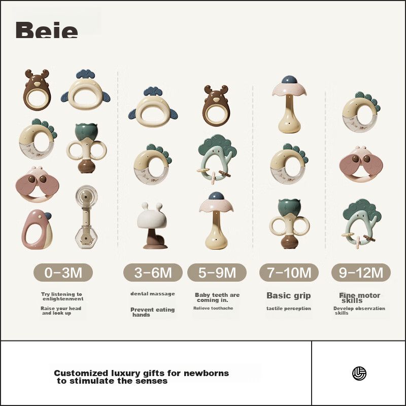 Set de Sonajeros y Mordedores BEIE de silicona y ABS para bebés 0-12 meses