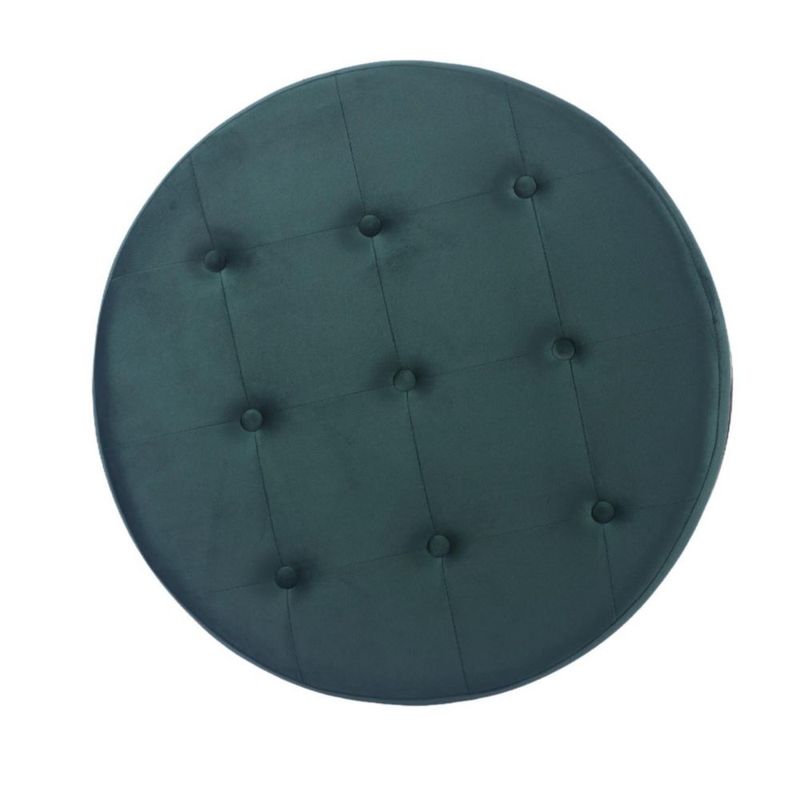 Set de Taburetes Redondos Tapizados en Terciopelo Verde con Base de Hierro y Patas de Metal Galvanizado