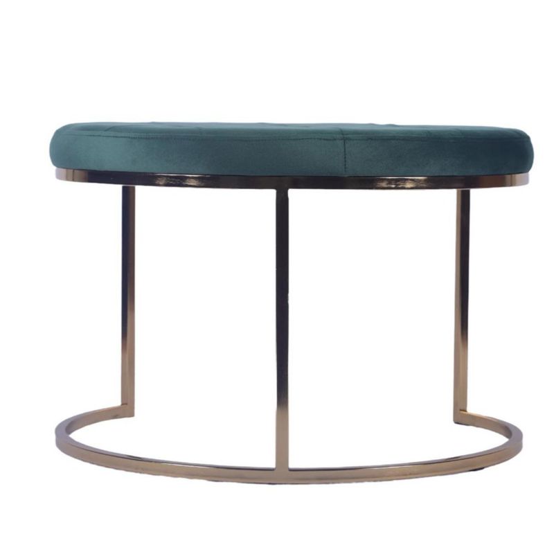 MueblesSalaPuffs y TaburetesSet de Taburetes Redondos Tapizados en Terciopelo Verde con Base de Hierro y Patas de Metal Galvanizado