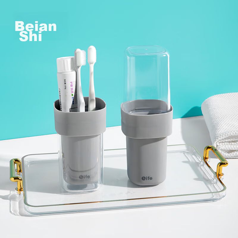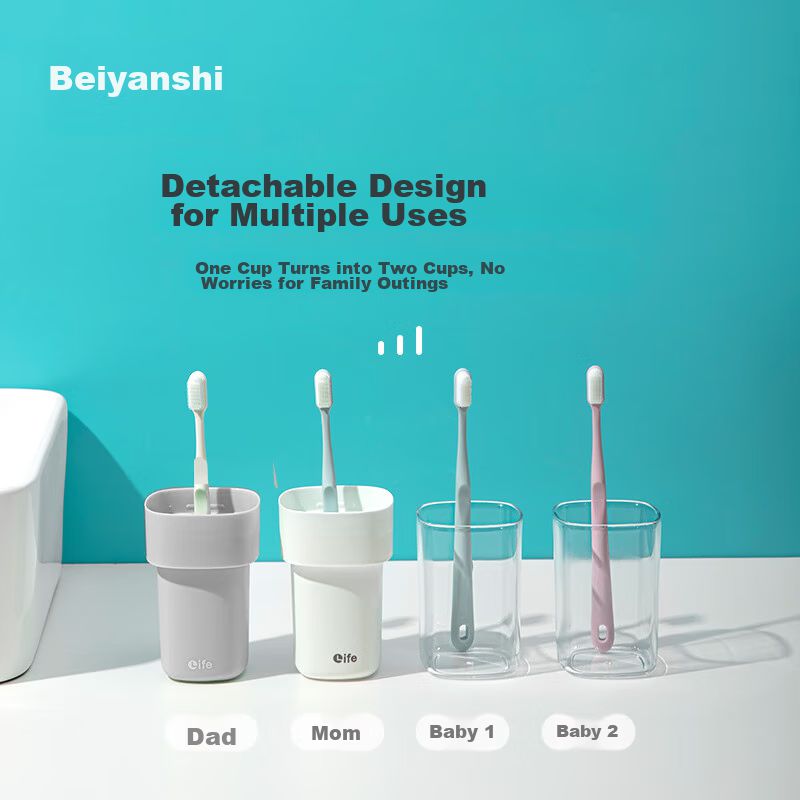 Salud y Equipamiento MédicoHigiene PersonalCuidado BucalSet de Vasos Portátiles para Enjuague Bucal y Cepillos de Dientes Desmontables 2 Piezas