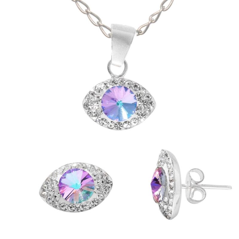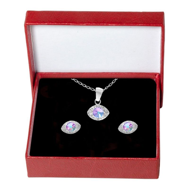 Set Juego Gargantilla y Aretes Ojo Morado Horoz Plata 925 EP800