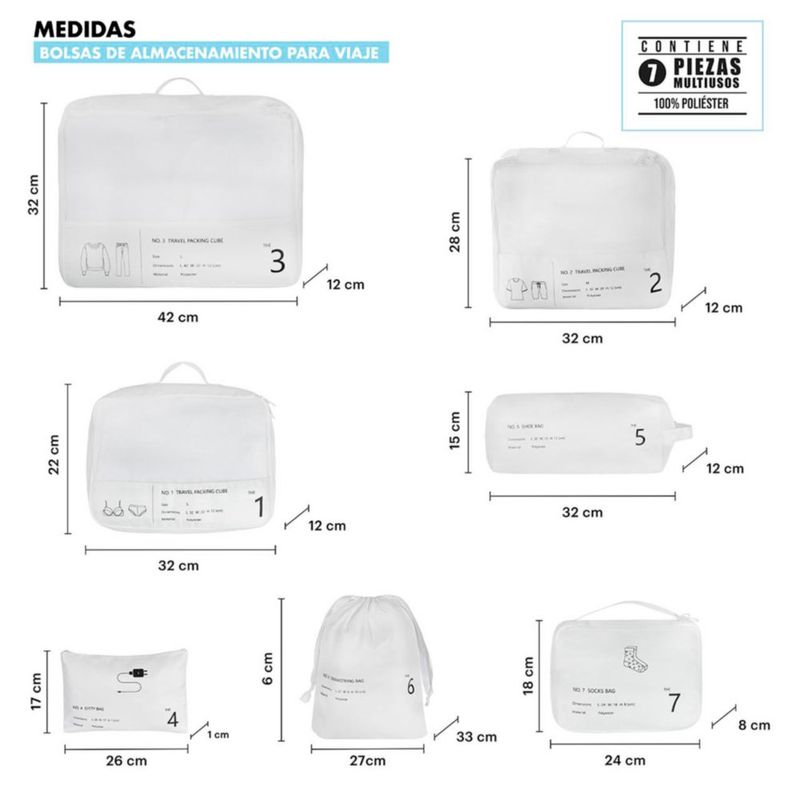 Moda y accesoriosMaletas y Artículos de viajeAccesorios de ViajeSet Organizador de viaje para maletas 7 Piezas.