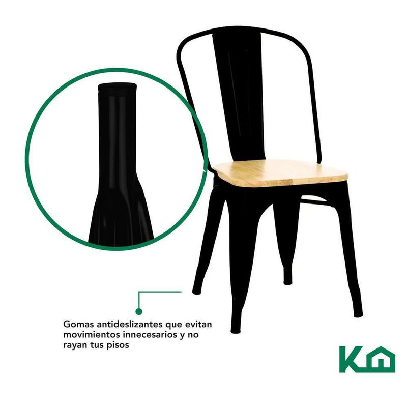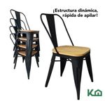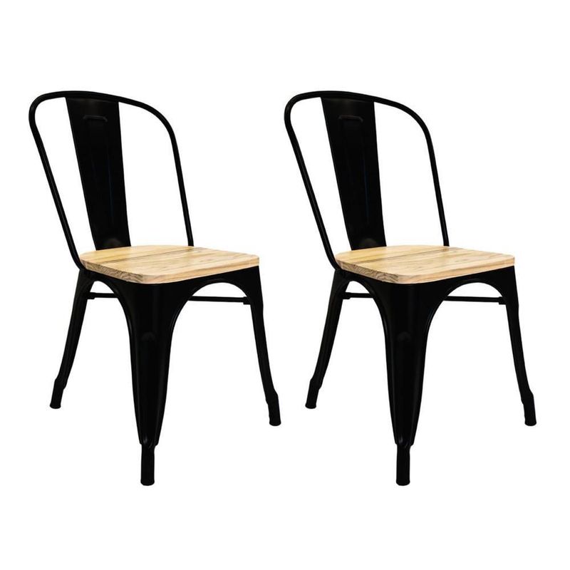 Set silla tolix metal asiento madera 2 pzas vintage exterior negro