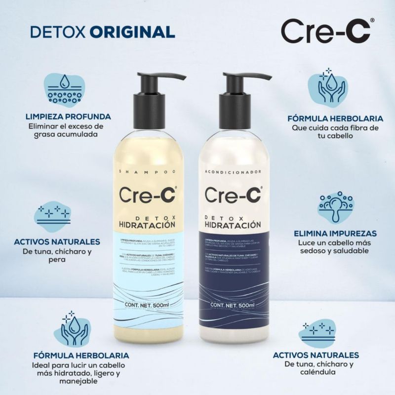 Shampoo y Acondicionador Cre-C® Detox Hidratación 500 ml