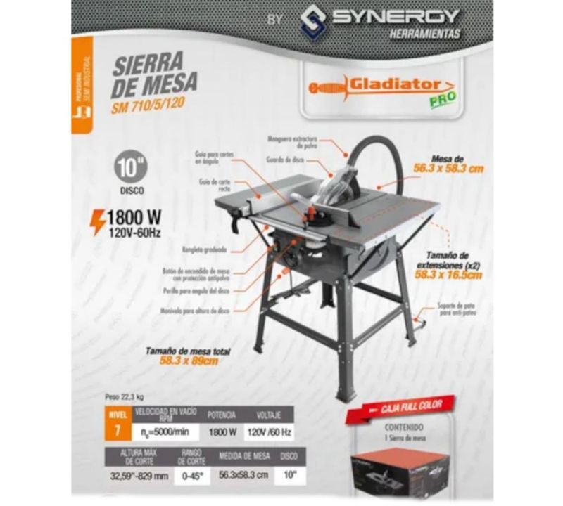 HerramientasEléctricasSierras, Motosierras y CaladorasSierra Banco / De Mesa PROFESIONAL 10 " (SM-710/05/120) -Gladiator Pro