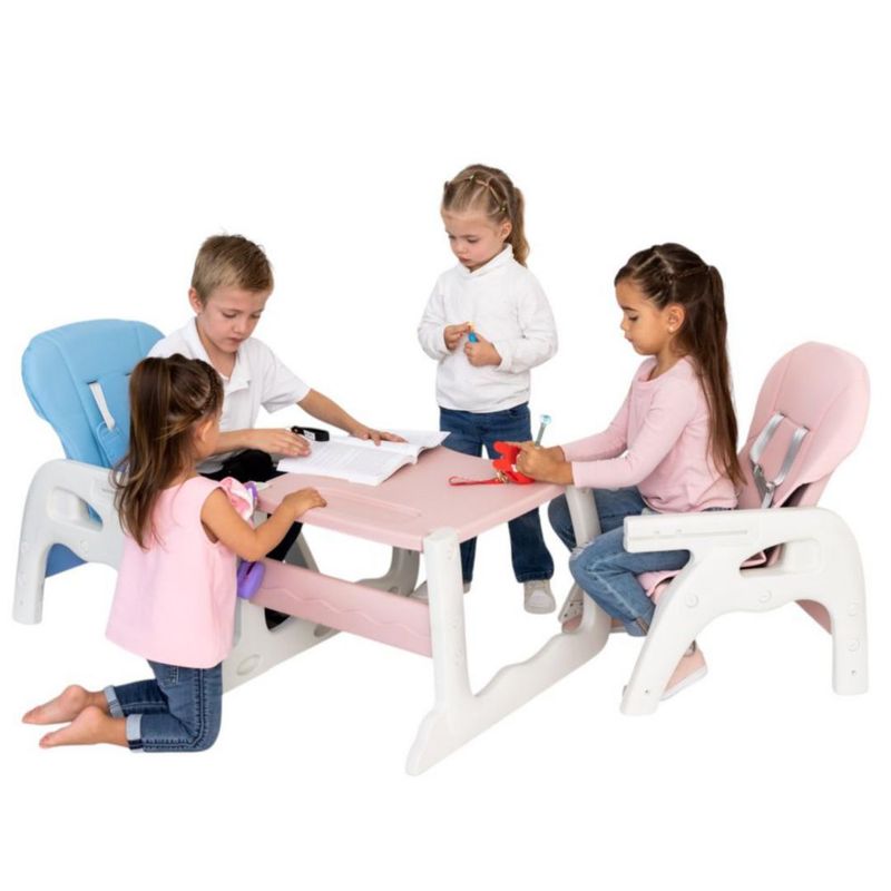 Bebés y juguetesBebésMuebles InfantilesSilla Alta Periquera 2 en 1 Convertible en Escritorio Infantil Color Azul, Multifuncional y Segura