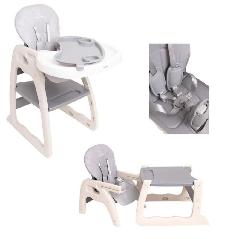 Bebés y juguetesBebésMuebles InfantilesSilla Alta Periquera 2 en 1 Convertible en Escritorio Infantil Color Gris, Multifuncional y Segura