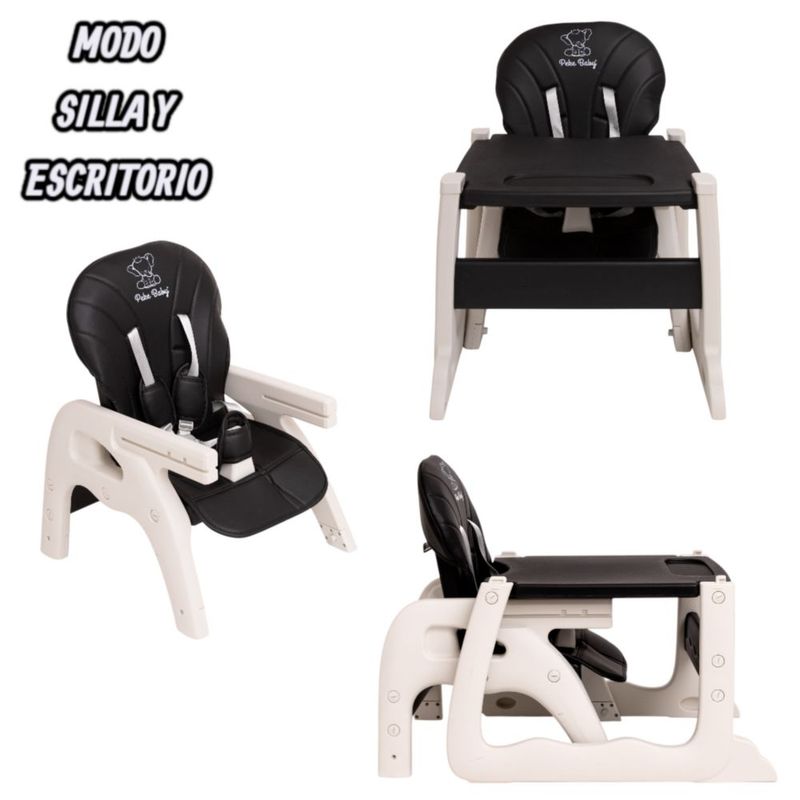 Bebés y juguetesBebésMuebles InfantilesSilla Alta Periquera 2 en 1 Convertible en Escritorio Infantil Color GrisNegro, Multifuncional y Segura