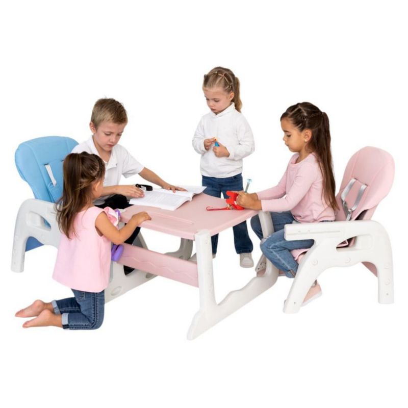 Bebés y juguetesBebésMuebles InfantilesSilla Alta Periquera 2 en 1 Convertible en Escritorio Infantil Color Rosa, Multifuncional y Segura