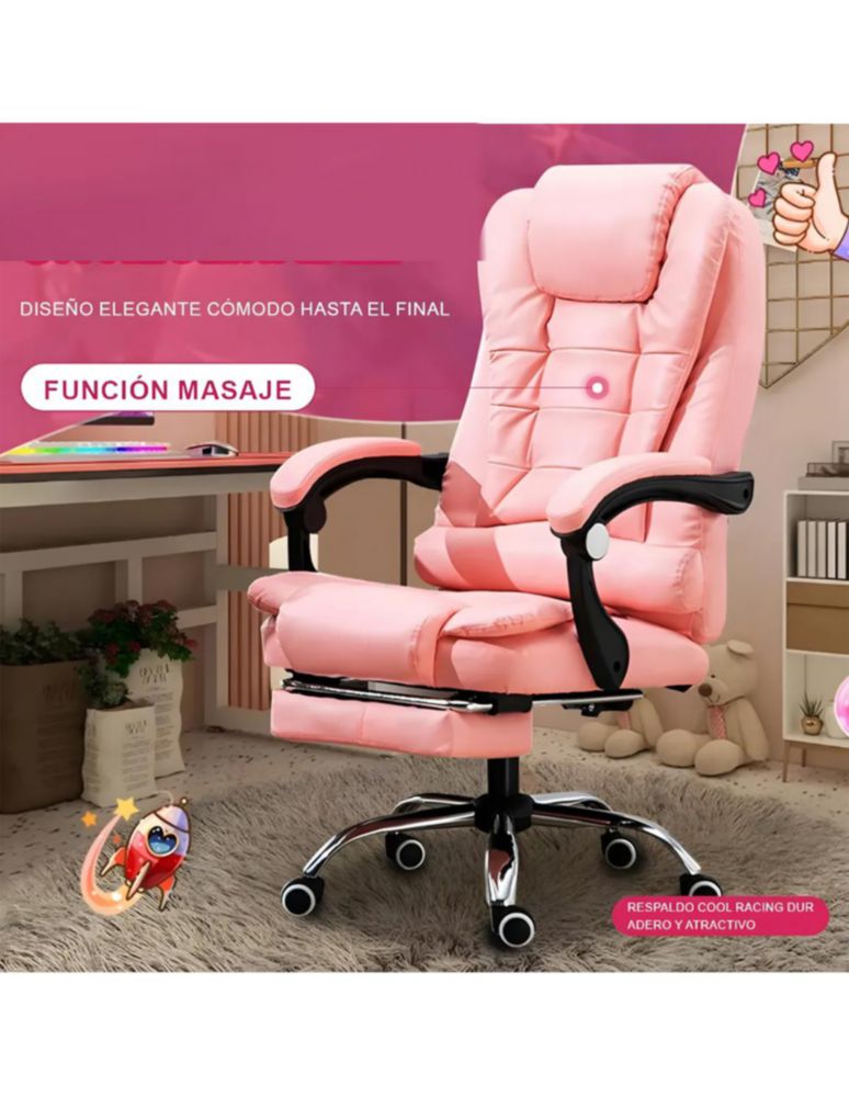 MueblesOficinaSillasSilla de escritorio ergonómica rosa con tapizado de cuero sintético Comóda