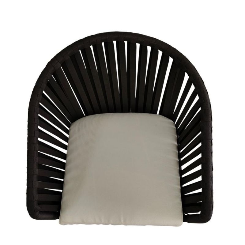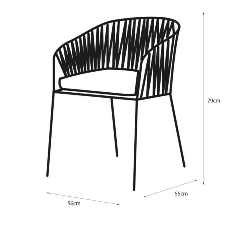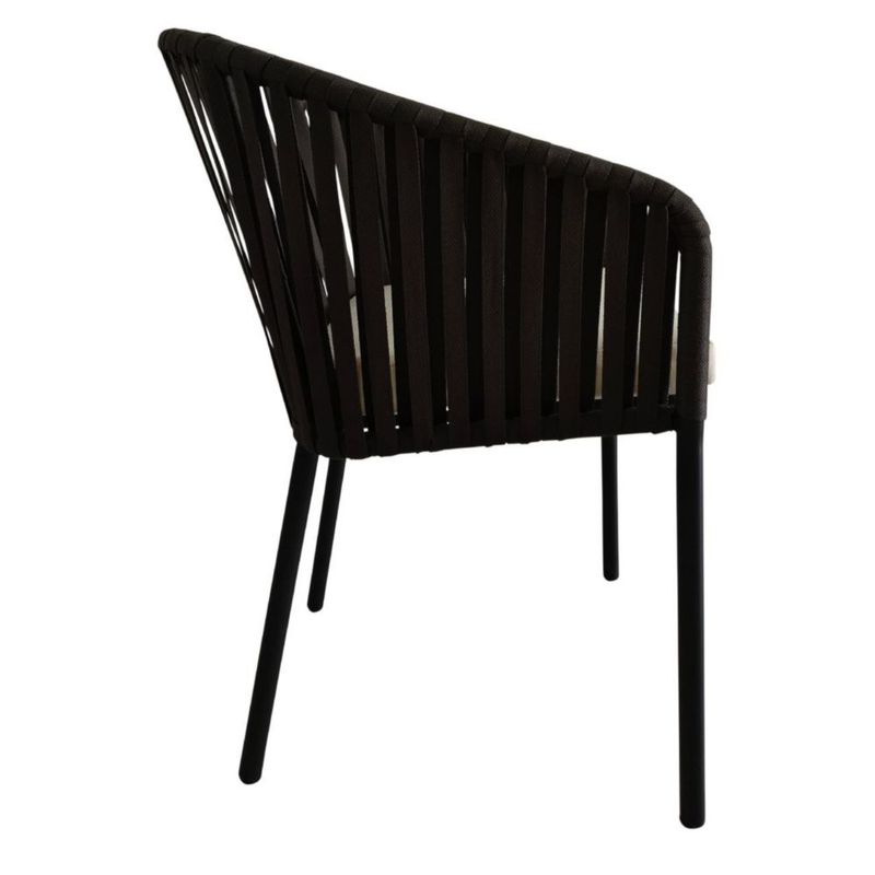 Silla de Exterior Negra y Beige con Asiento Acolchado de Hule Espuma. Estructura de Aluminio y Cuerda Sintética