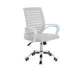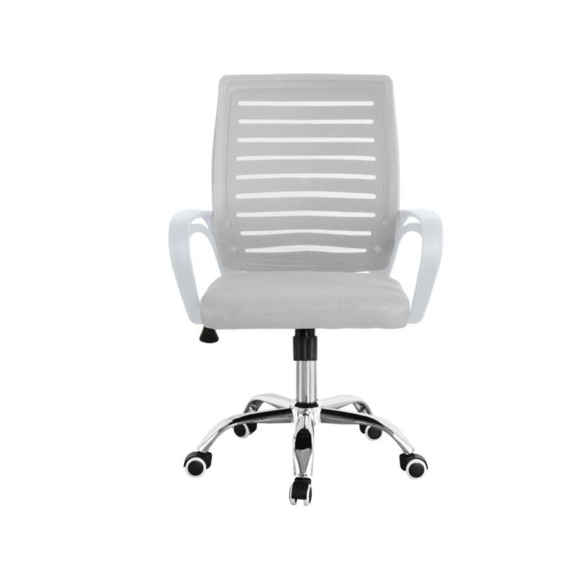 Silla de Oficina Giratoria Blanca y Gris con Altura Ajustable, Asiento Acolchado, Respaldo Reclinable y Estructura de Metal