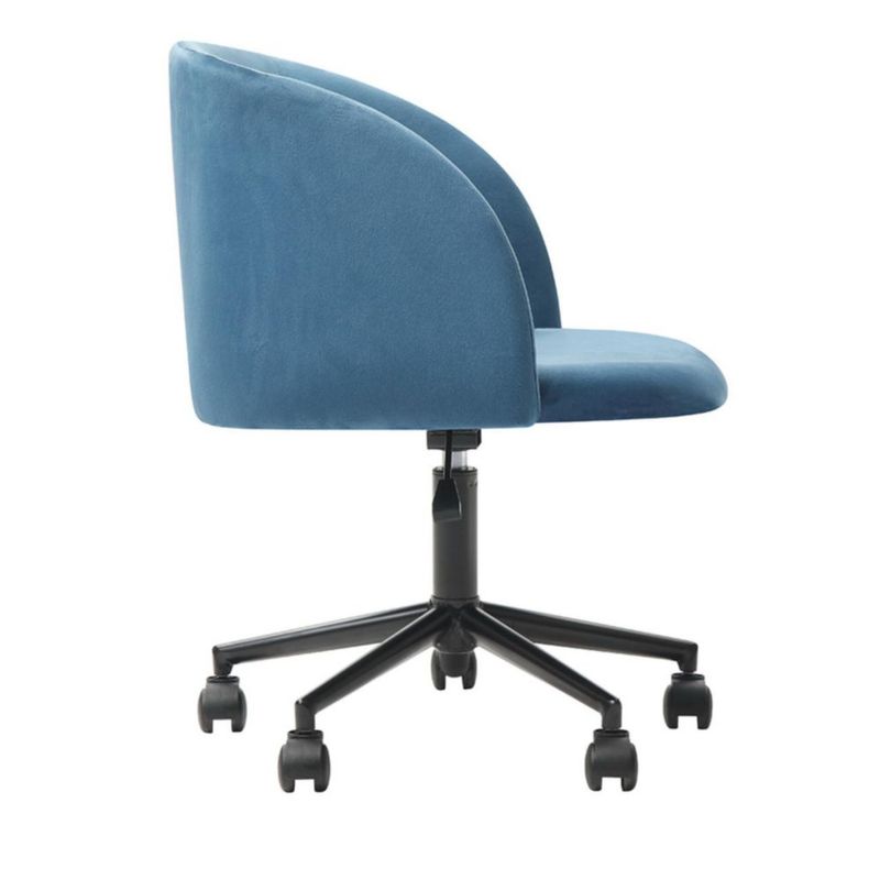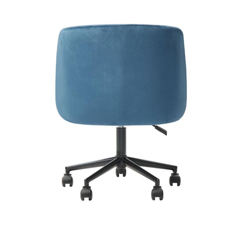 Silla de Oficina Giratoria en Terciopelo Azul con Altura Ajustable y Asiento Acolchado