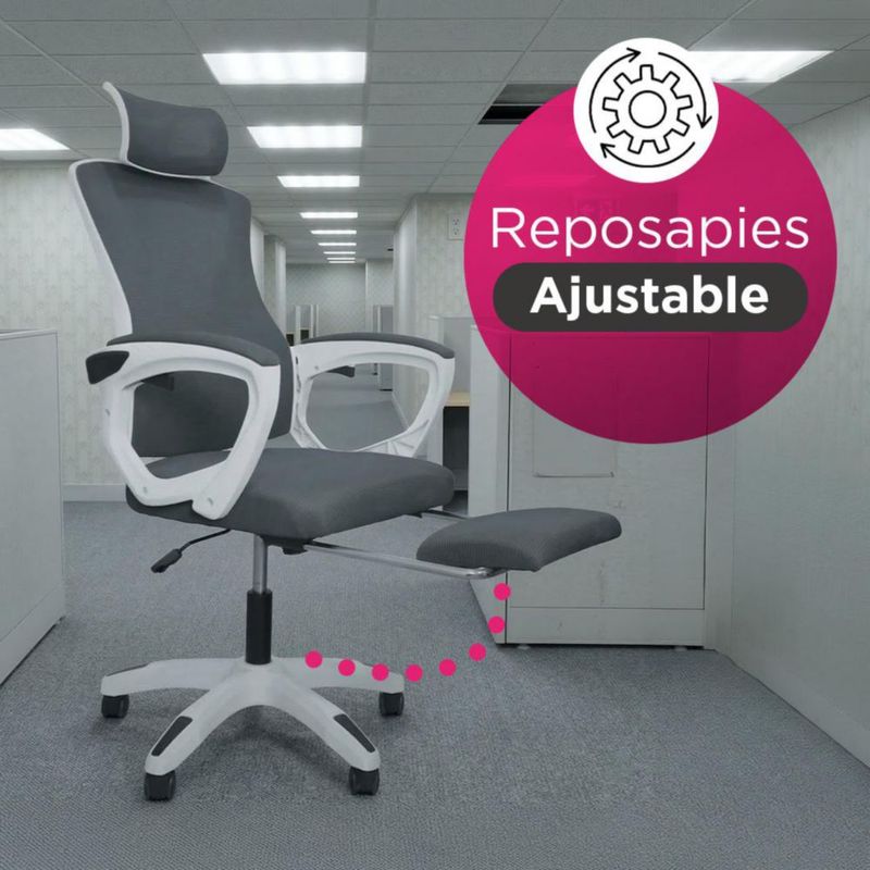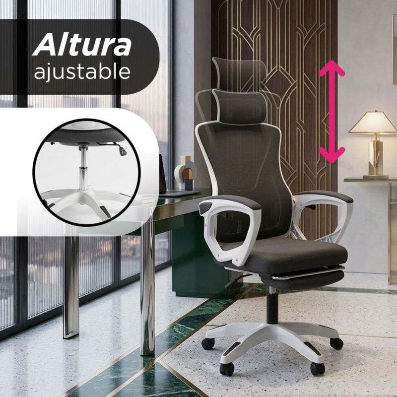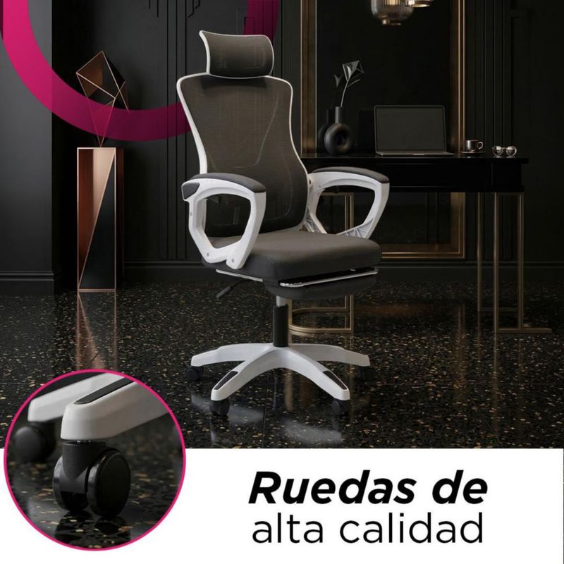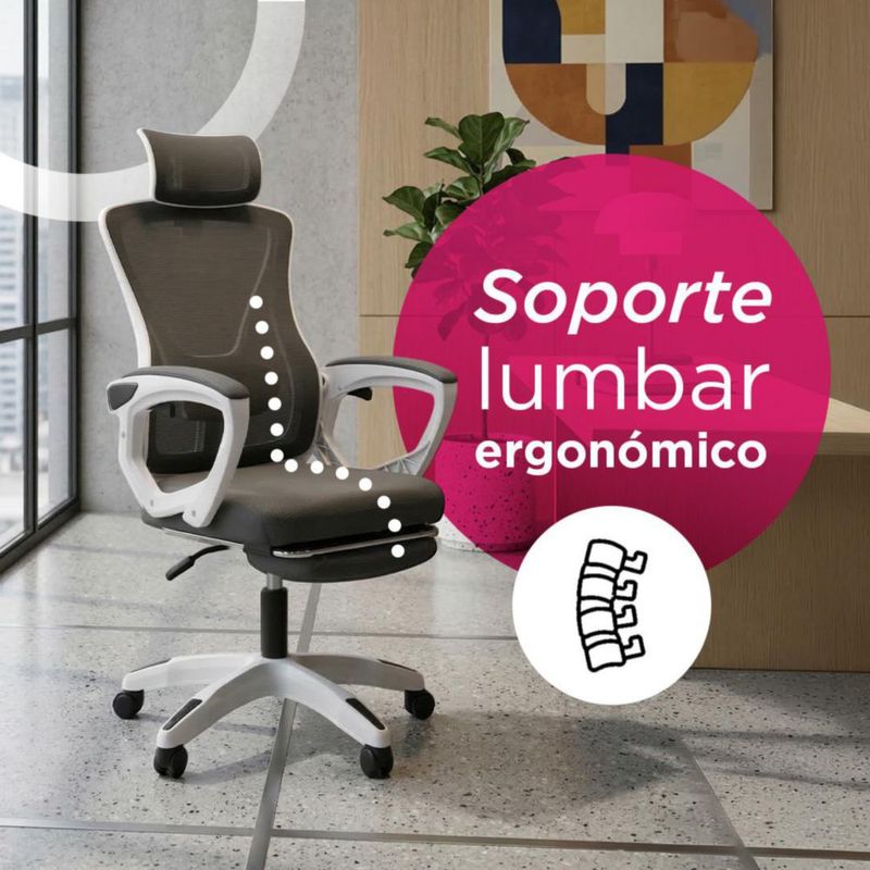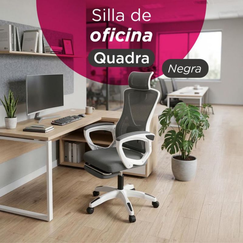 MueblesOficinaSillasSilla De Oficina Soporte Lumbar Quadra Vanlig Con Reposapies y Reposacabezas Respaldo Transpirable 360° Reclinable Ergonómica Negra