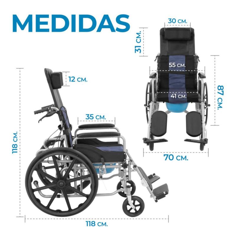 Silla De Ruedas Reclinable Con Posapiés Y Unidad Sanitaria Extraíble