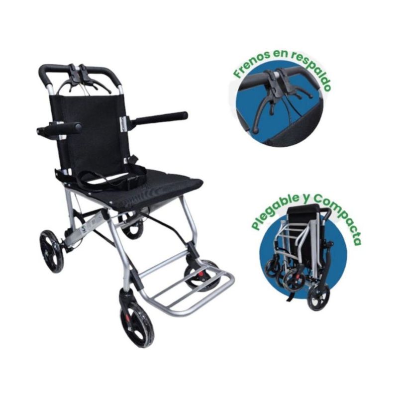 Silla De Traslado Viajera Plegable Y Compacta Con Frenos
