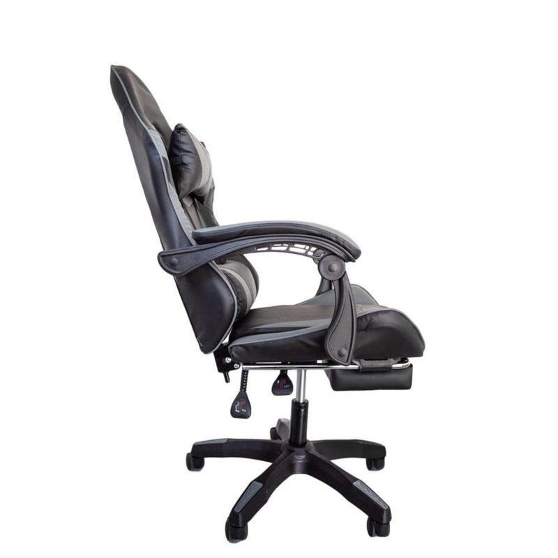 Silla Gamer Ergonómica Reposapiés Reclinable Gaming Oficina Negro Con Gris