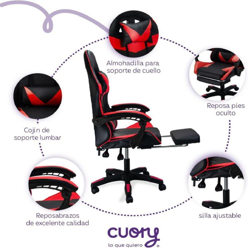 Silla Gamer Ergonómica Reposapiés Reclinable Gaming Oficina Rojo