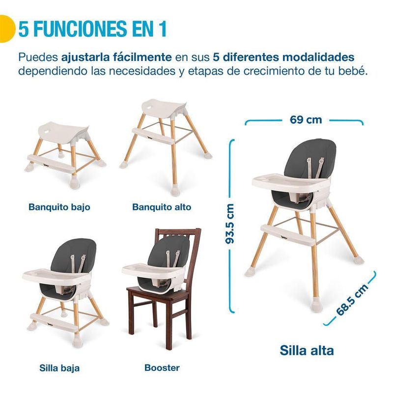 Bebés y juguetesBebésMuebles InfantilesSilla para Bebé 5 en 1 Periquera Silla Alta Niños de 6 a 36 Meses