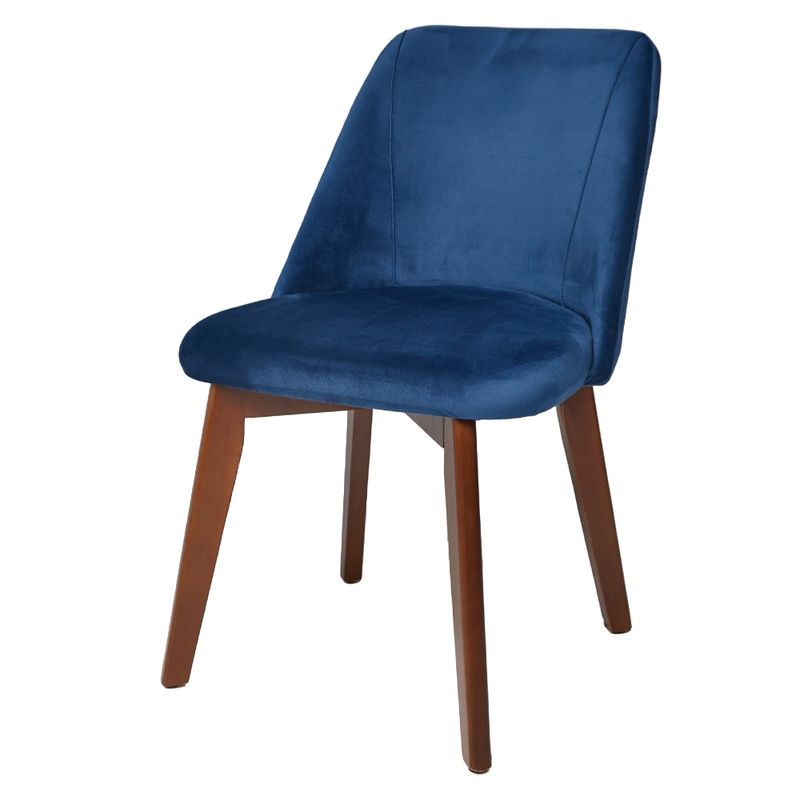 Silla para Comedor Tapizada en Terciopelo Azul. Estructura de Madera