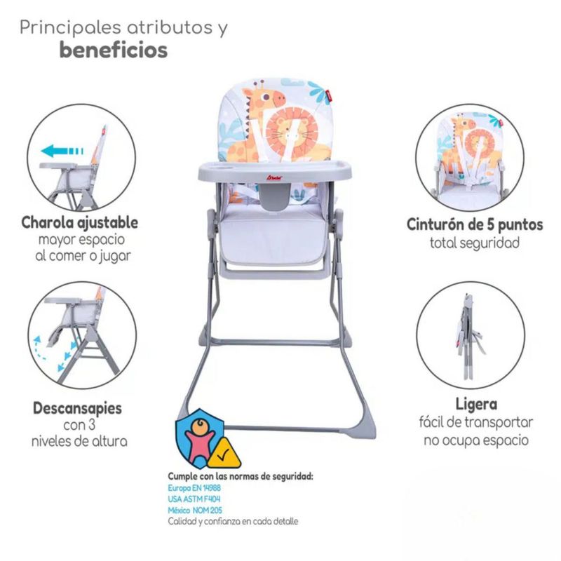 Silla Periquera D´Bebé Light Ultra Compacta Ajustable Gris