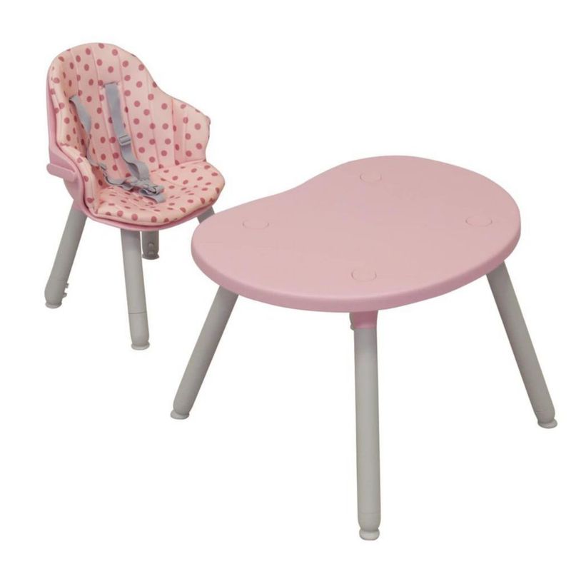 Silla Periquera Prinsel Bistro 3 En 1 Acolchonada Mesita Rosa Bolitas
