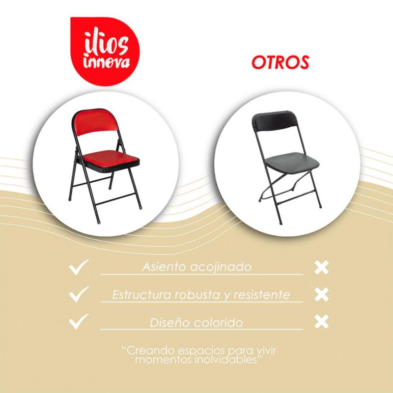 Ilios Innova | Silla Plegable Roja con negro Acojinada. Ergonómica, Resistente y Compacta. Ideal para Reuniones o Eventos en Interior o Exterior.