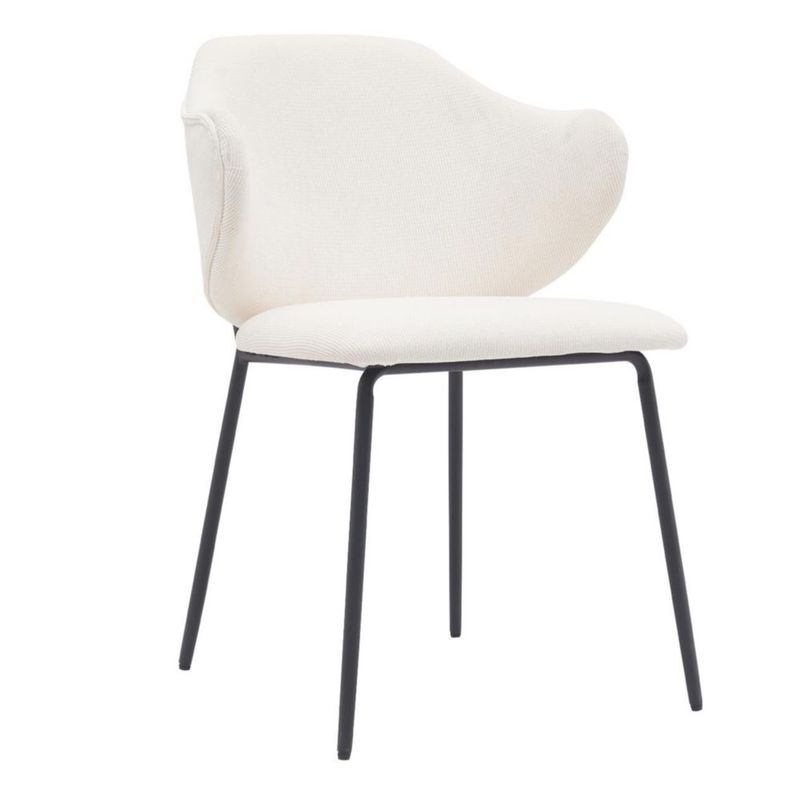 Silla Tapizada en Tela Beige con Asiento Acolchado de Hule Espuma y Patas de Metal Negras