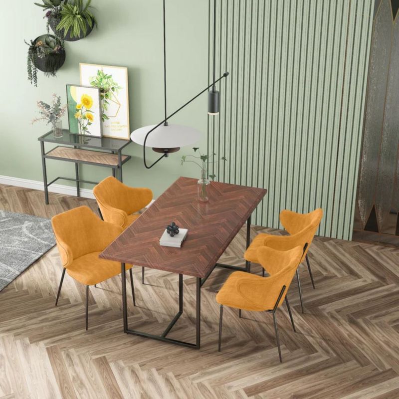 Silla Tapizada en Tela Mostaza con Asiento Acolchado de Hule Espuma y Patas de Metal Negras