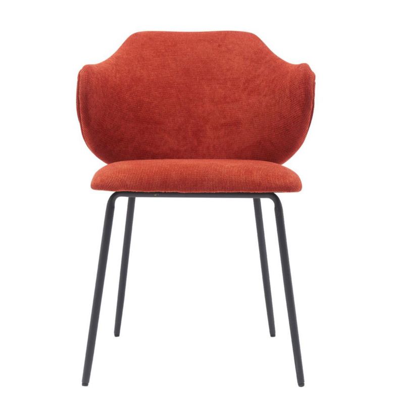 Silla Tapizada en Tela Roja con Asiento Acolchado de Hule Espuma y Patas de Metal Negras