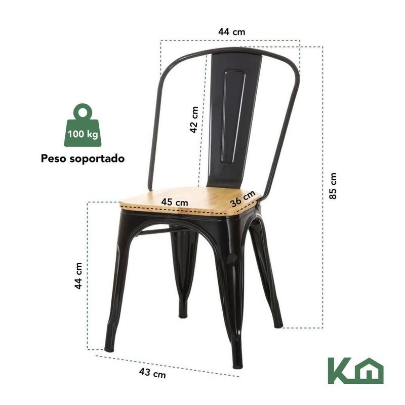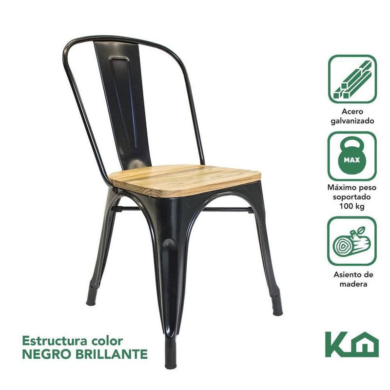 Silla tolix metal asiento madera vintage restaurante moderna negro