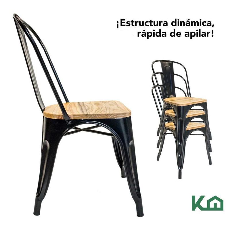 HogarPatio y JardínSillas, Sillones, Bancos y SofásSilla tolix metal asiento madera vintage restaurante moderna negro