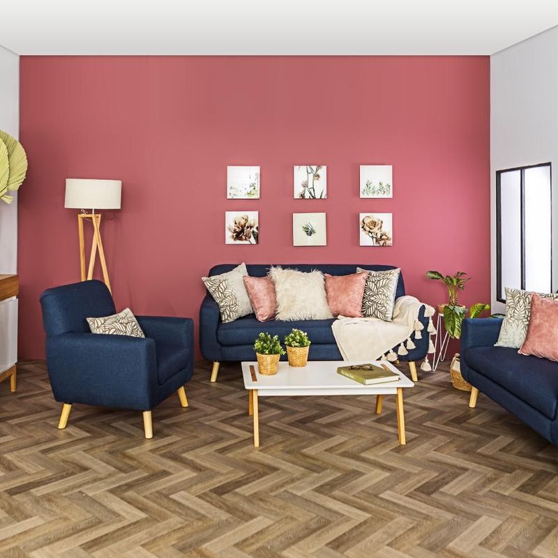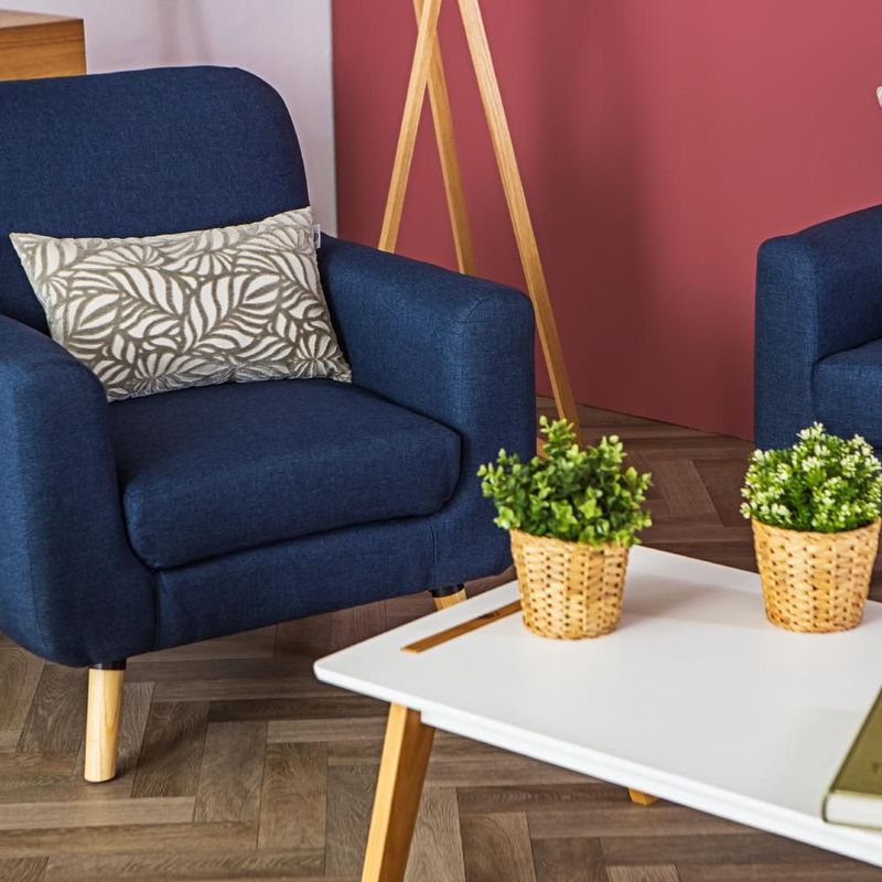 Sillón Individual con Tapizado Azul. Estructura de Madera Sólida