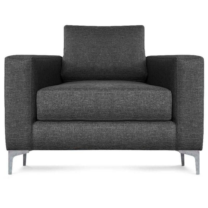 Sillón Individual con Tapizado Color Gris Oscuro. Estructura de Madera Sólida y Patas de Acero