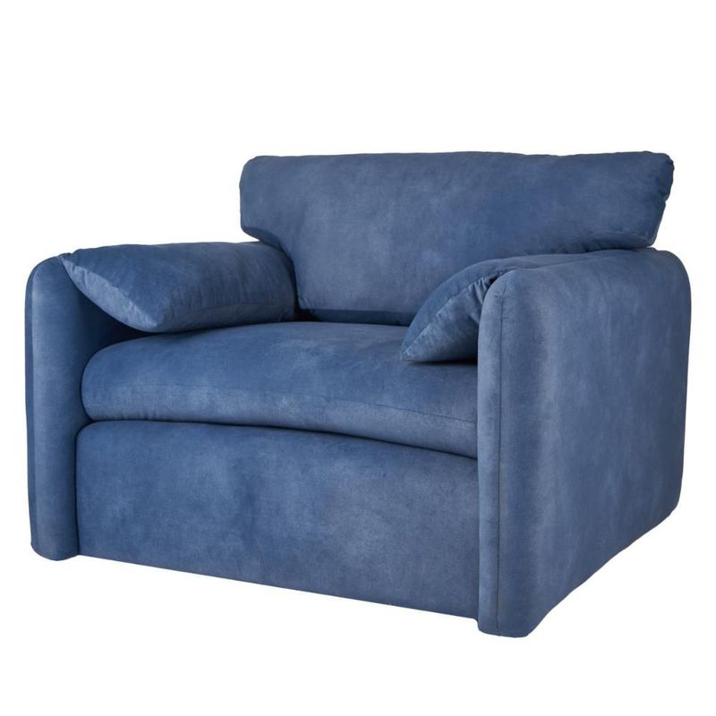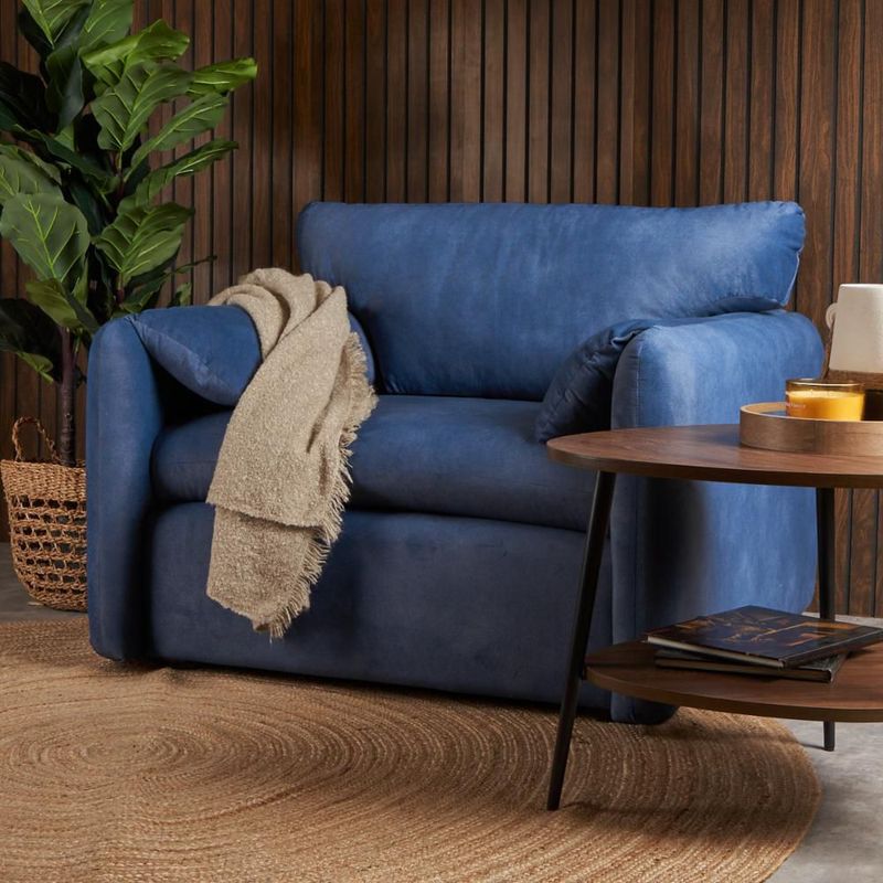 MueblesSalaSillones y SofásSillón Individual Tapizado en Tela Premium Azul Plomo. Estructura de Madera Sólida