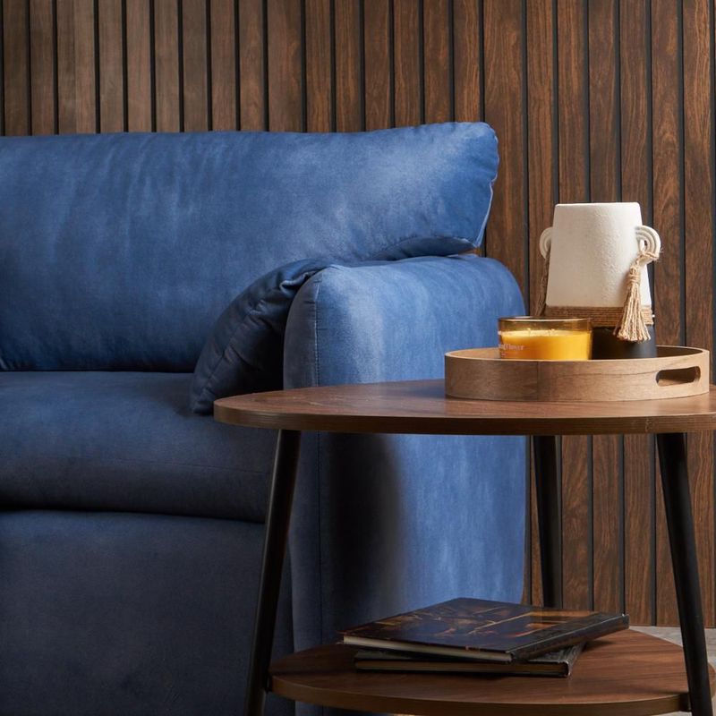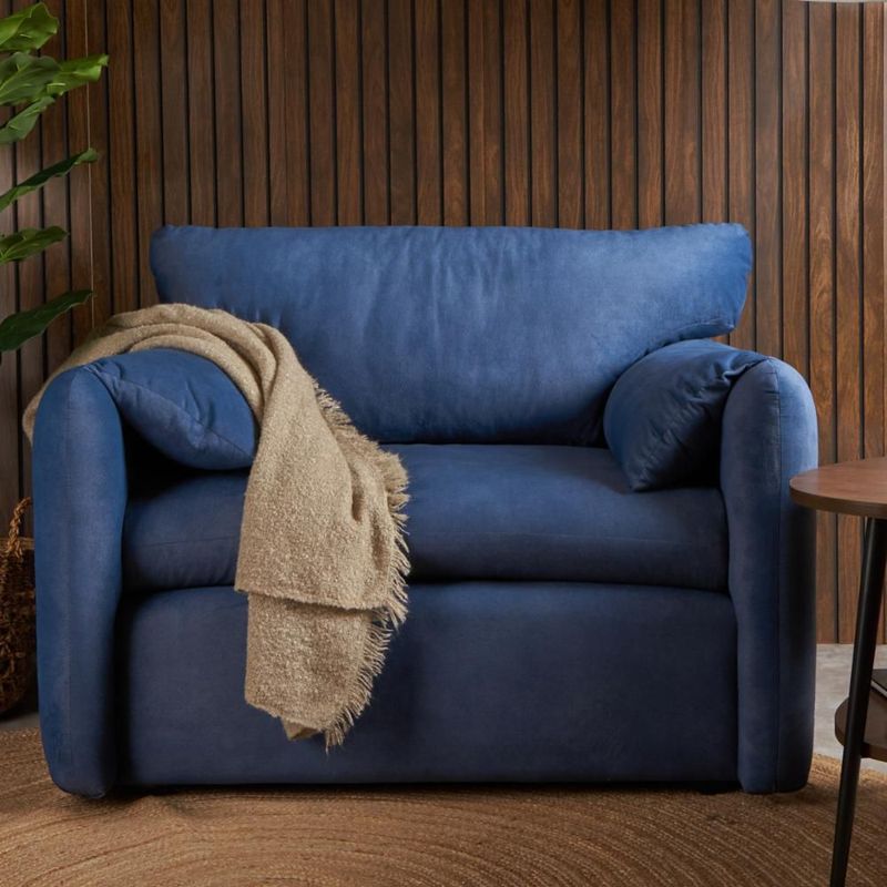 Sillón Individual Tapizado en Tela Premium Azul Plomo. Estructura de Madera Sólida