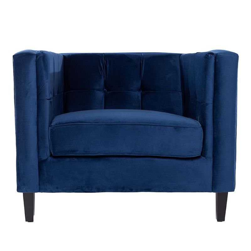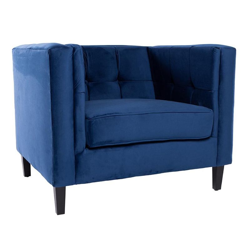 MueblesSalaSillones y SofásSillón Individual Tapizado en Terciopelo Color Azul. Estructura de Madera Sólida