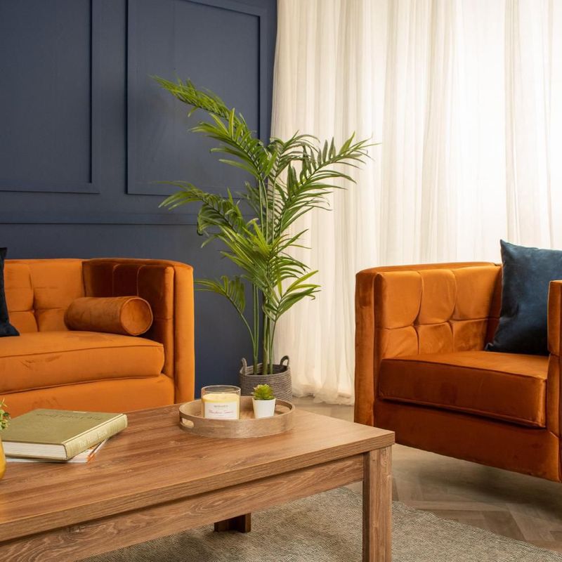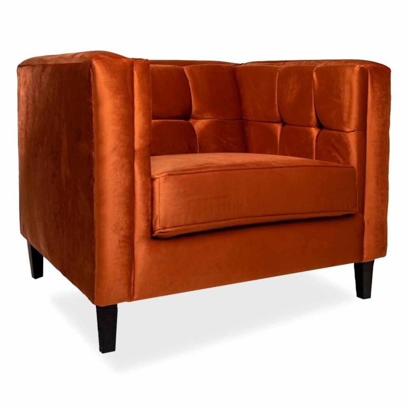 MueblesSalaSillones y SofásSillón Individual Tapizado en Terciopelo Color Canela. Estructura de Madera Sólida