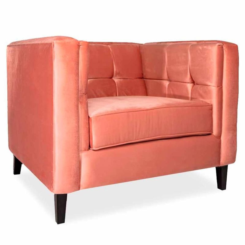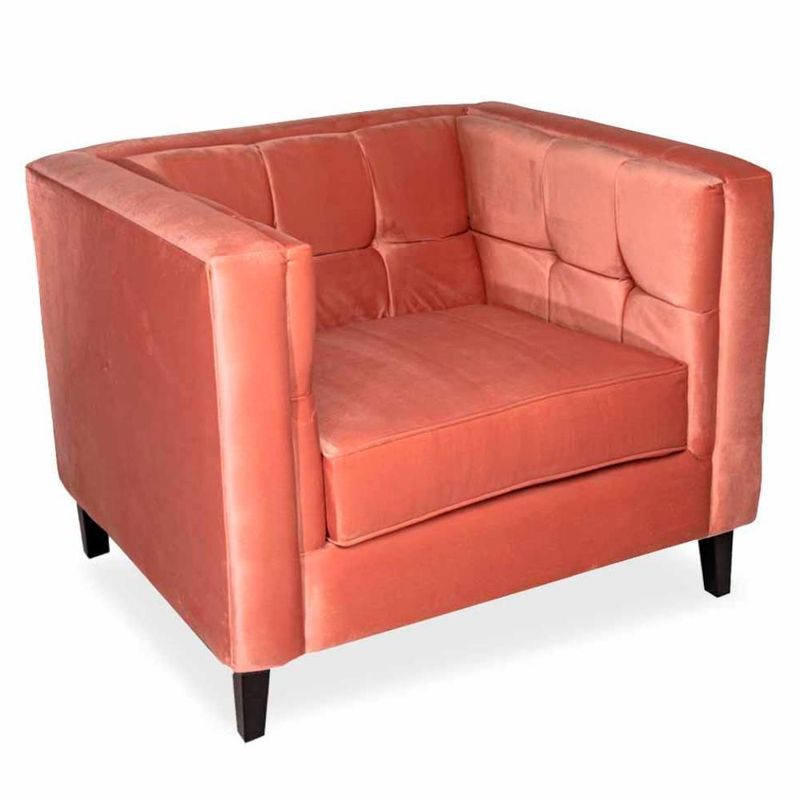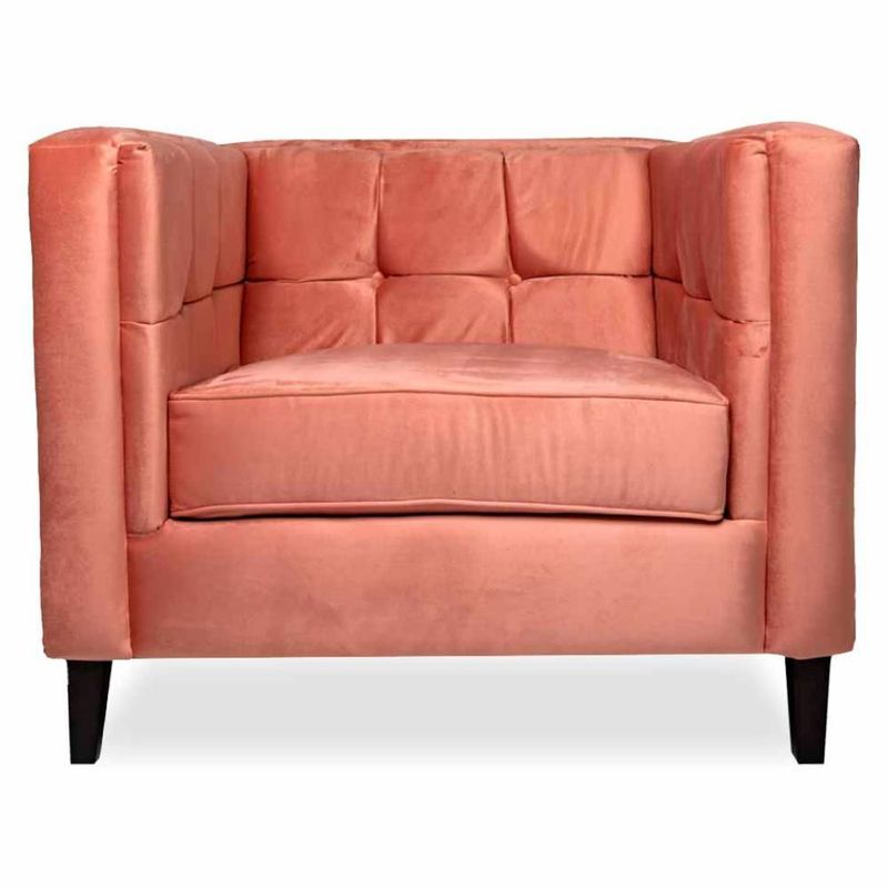 MueblesSalaSillones y SofásSillón Individual Tapizado en Terciopelo Color Salmón. Estructura de Madera Sólida
