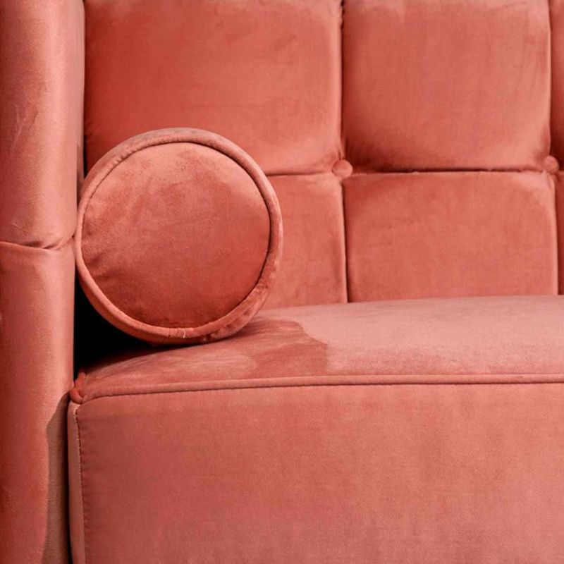 Sillón Individual Tapizado en Terciopelo Color Salmón. Estructura de Madera Sólida