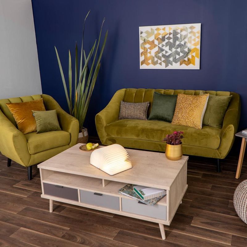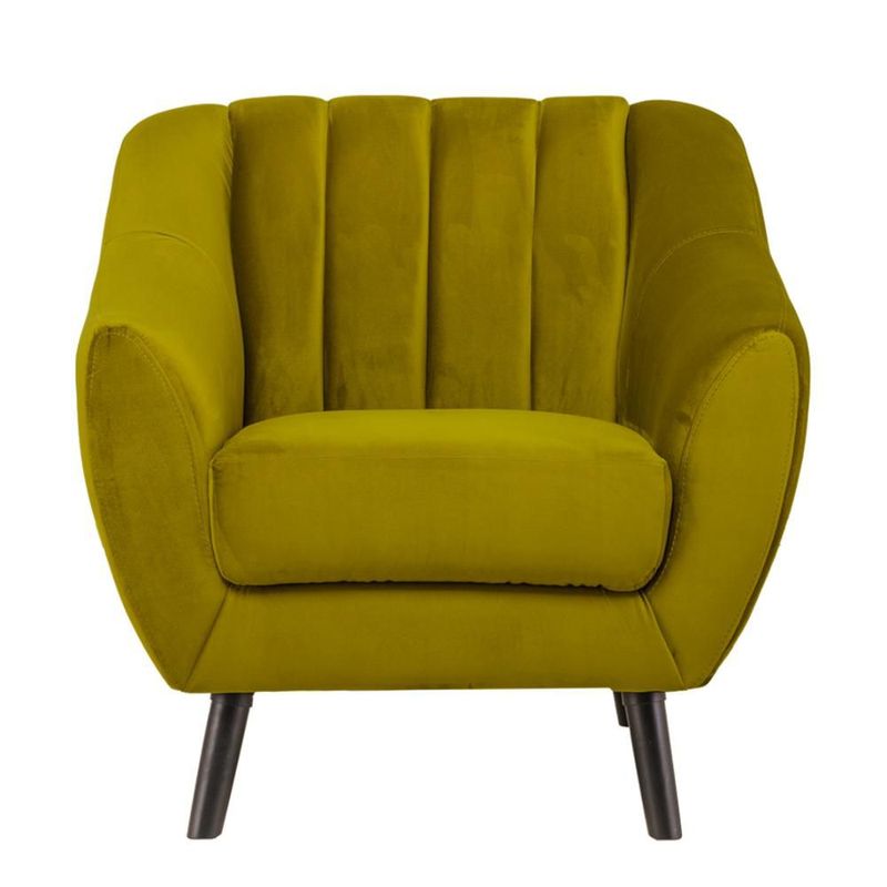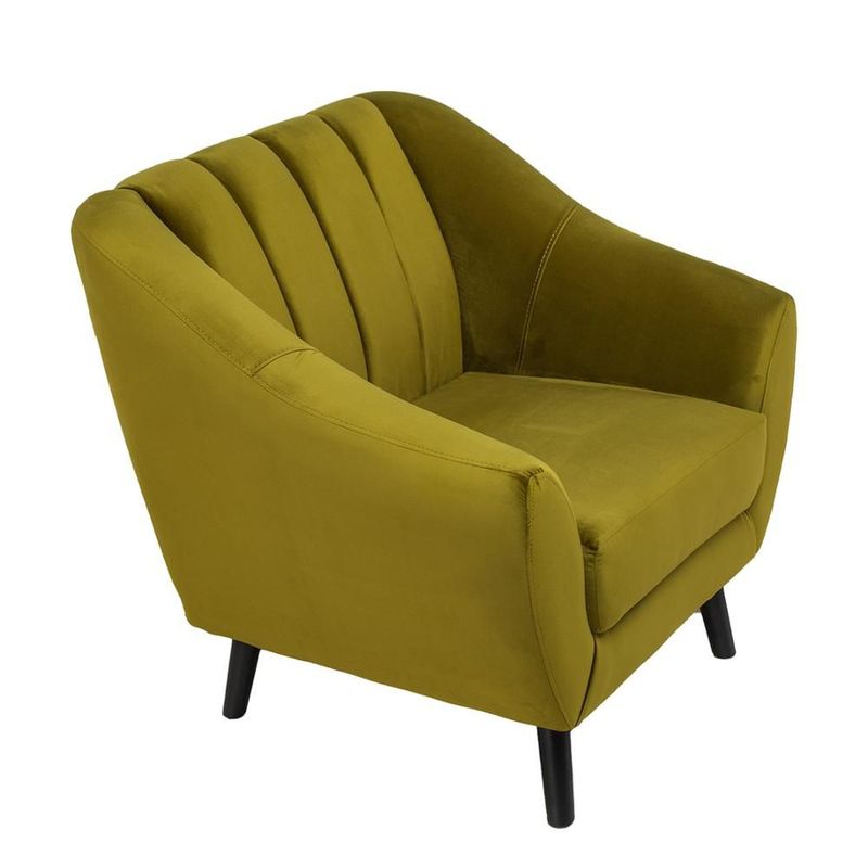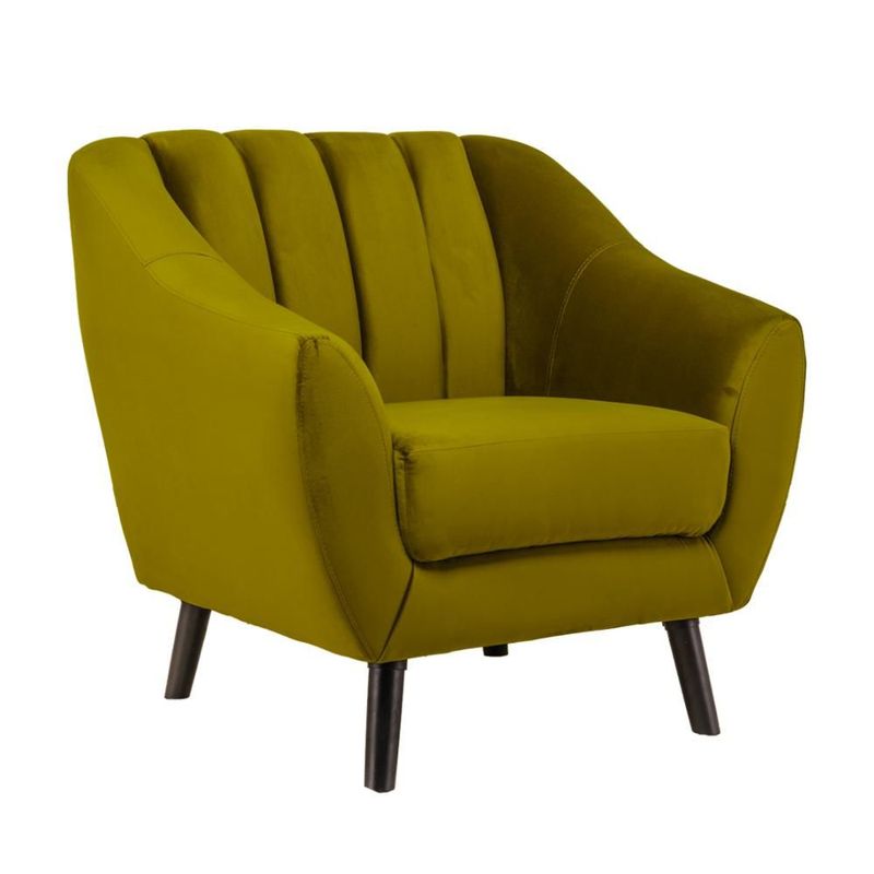 MueblesSalaSillones y SofásSillón Individual Tapizado en Terciopelo Color Verde Olivo. Estructura de Madera Sólida