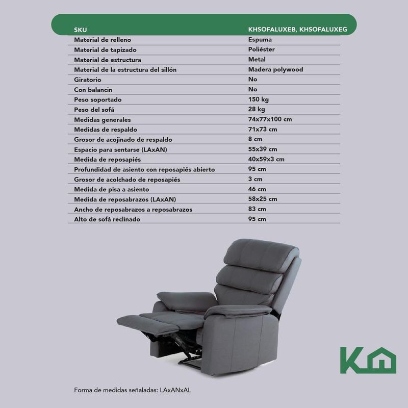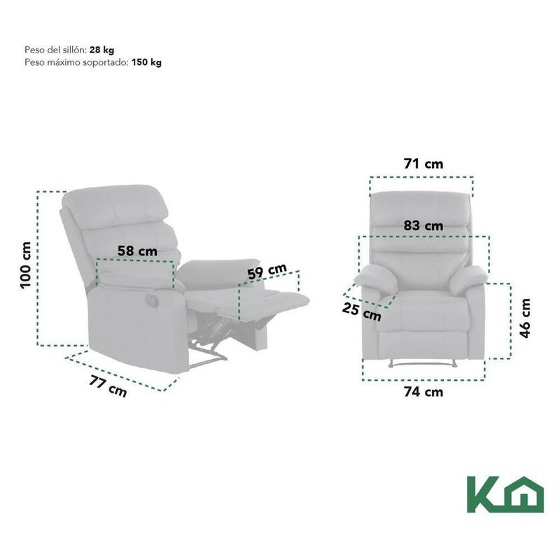 Sillón reclinable de tela reposet manual individual gris